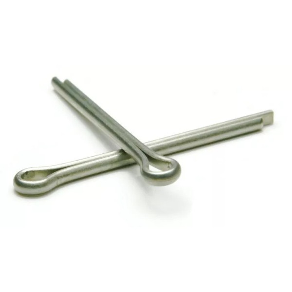 A metal pin used to fasten two parts of a mechanism together.