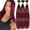 Red Bundles Human Hair Ombre Straight Bundles Burgundy Human Hair 18 20 22 Inch Soft and Healthy Brazilian Ombre Bundles Human Hair Extension