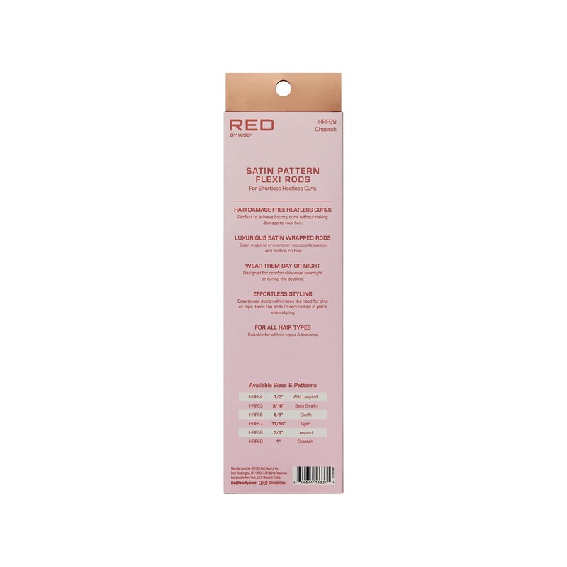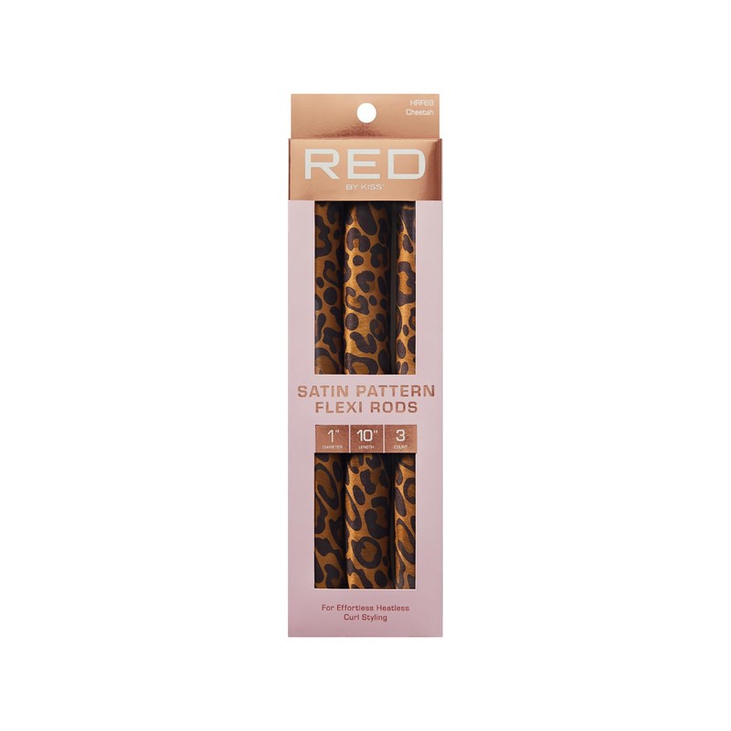 RED by Kiss Satin Pattern Flexi Rods, Heatless Curling Rods, Satin Cover, No Heat Styling for Frizz-Free Hair (Cheetah / 1", 3pcs)