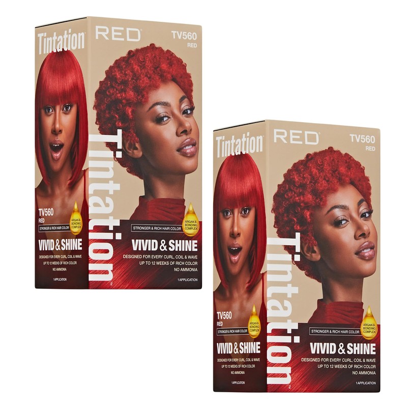 Red by Kiss Tintation Vivid & Shine Permanent Hair Dye – High Lift Formula with Argan Oil & Vitamin E, Bonding Complex, Sulfate & Ammonia Free, 100% Gray Coverage, Lasts 12+ Weeks (Red, 2 Pack)