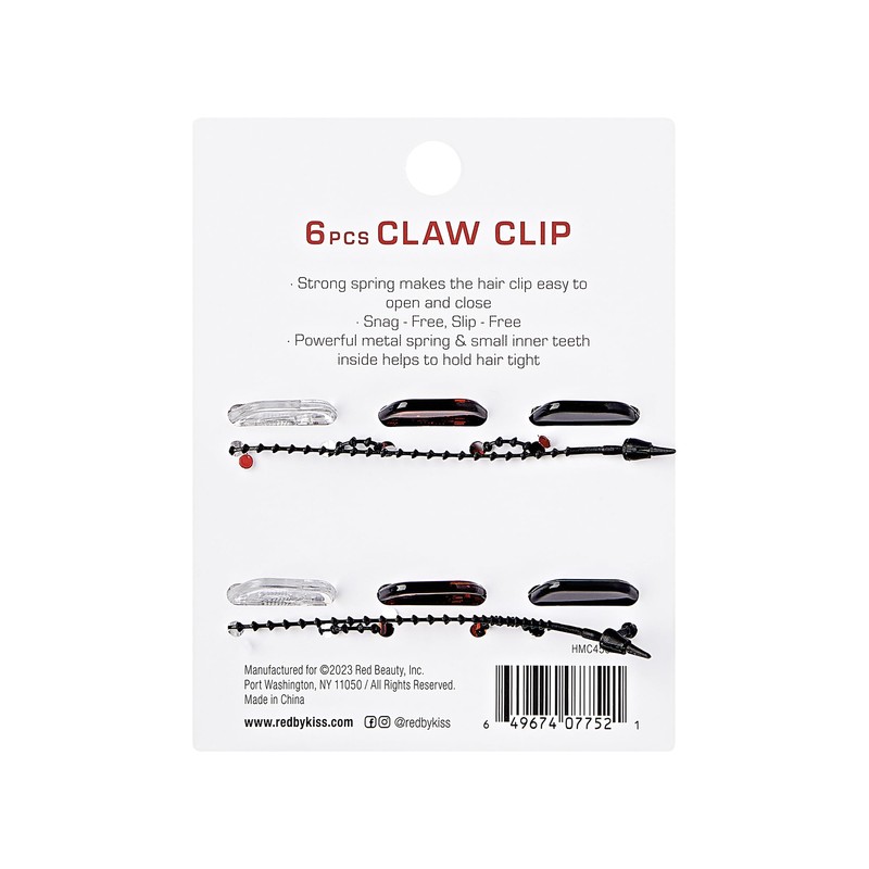 RED by Kiss X-Large Hair Claw Clip for Women, Thin Thick Curly Hair, 90’s Strong Hold Jumbo Big Size Hair Clips, Non-Slip Stylish Jaw Clips (Small, 6pcs)