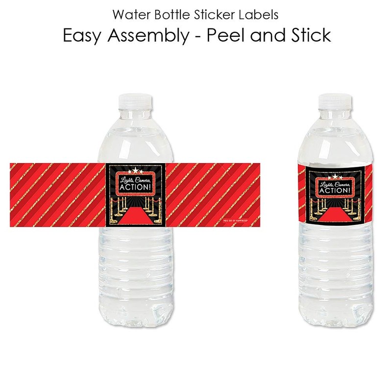 - HIGH QUALITY PARTY SUPPLIES: Red Carpet Hollywood water bottle labels are professionally printed on a sticker paper with a glossy coating. They are waterproof and can be used on beverages that will be chilled, just be sure to apply prior to chilling. Add them to a prom, homecoming, bachelorette or birthday party beverage bar for an impressive, coordinated display.