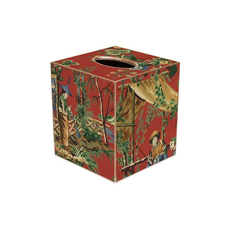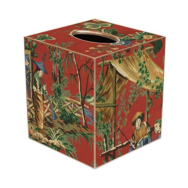 Marye-Kelley Red Chinoiserie Paper Mache Tissue Box Cover