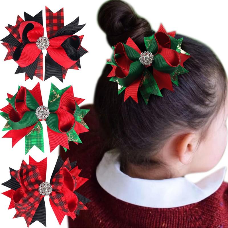 - Red Christmas Bow Hair Clip hairpin Green Clip Bow Hairpin Plaid Alligator Hair Clips Hair Accessories.