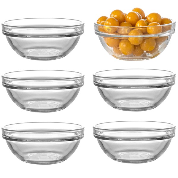 Red Co. 6-Pack 0.2 Quart Fully Tempered Clear Glass Mixing and Prepping Bowl with Safety Rim, Mini