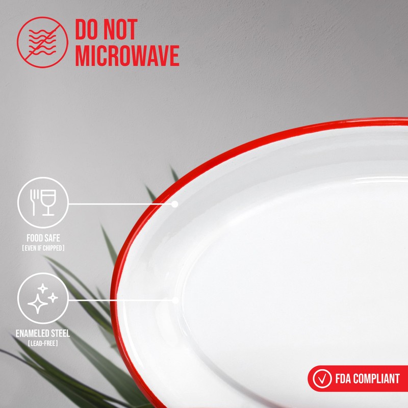 Red Co. Set of 4 Enamelware Metal Classic 13" Serving Oval Tray Platter, Soli...