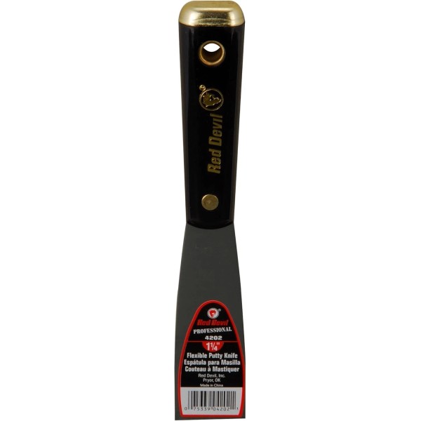 The Red Devil 4202 1-1/4 inch Flex Putty Knife is a reliable tool from a trusted brand. Designed with a high carbon steel blade, this knife is perfect for multiple painting and drywall tasks.