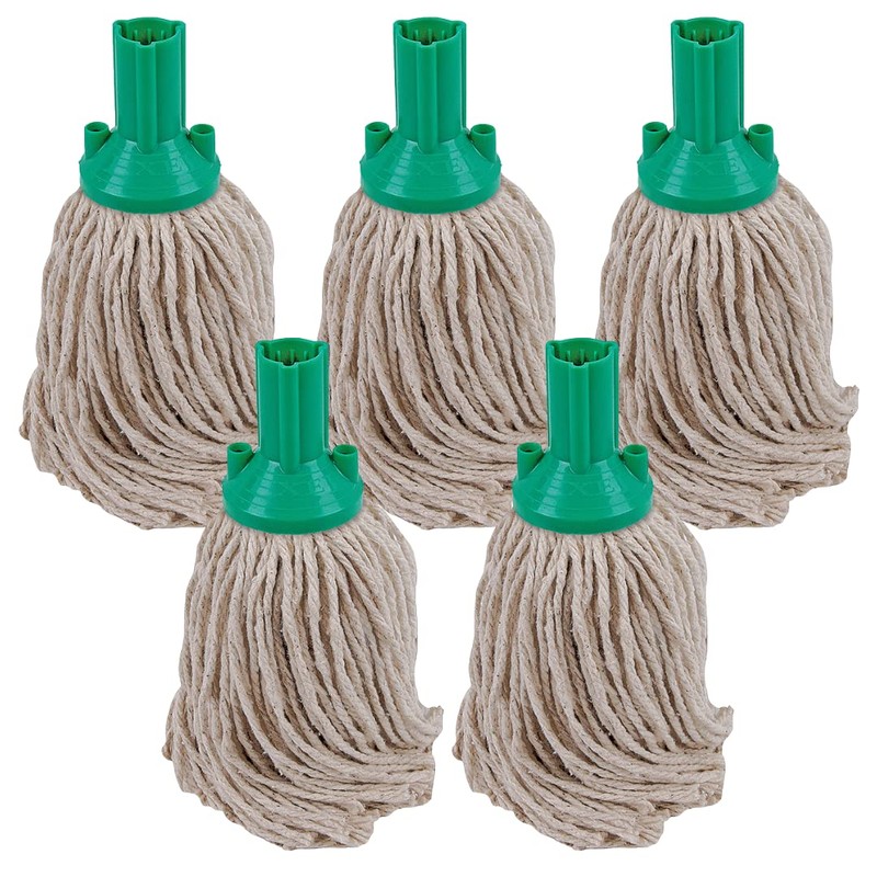 Red Disposable Cotton Mop Head Replacements PY Yarn Traditional String Mop Heads Self Threaded Socket Screw Mop Head - Colour Coded - (Pack Of 5) (Green)