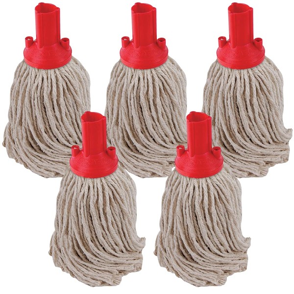 Red Disposable Cotton Mop Head Replacements PY Yarn Traditional String Mop Heads Self Threaded Socket Screw Mop Head - Colour Coded - (Pack Of 5) (Red)