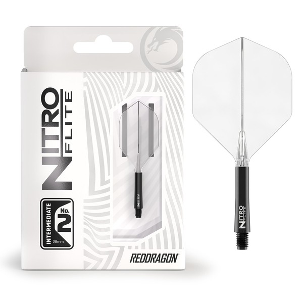 RED DRAGON Darts - Nitro Flite Integrated Flights & Shafts System - No.2 Shape and Design - Black & Transparent Colour, Intermediate Length