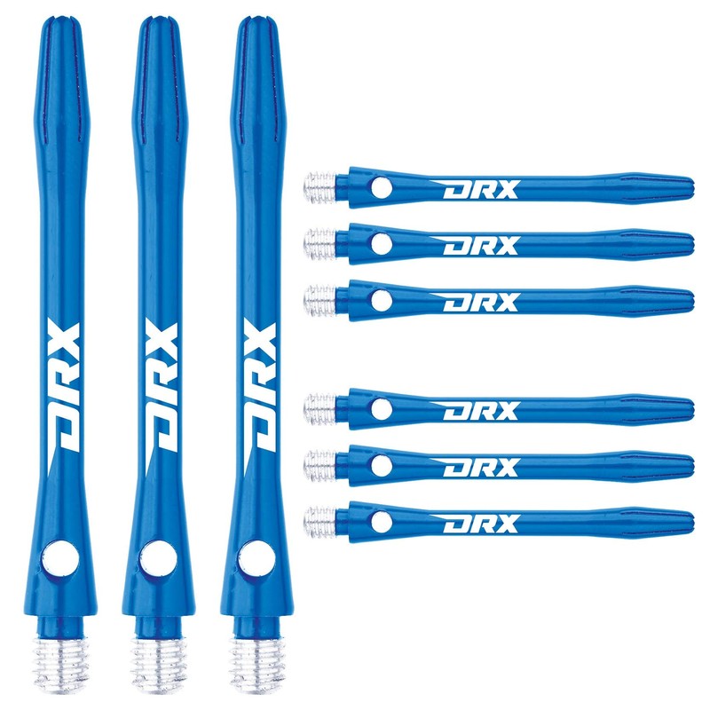 RED DRAGON DRX Coated Aluminium Medium Blue Logo Dart Stems (Shafts) - 2 sets per pack (6 Stems in total)