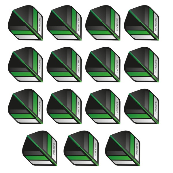 RED DRAGON Hardcore XT Black and Green Stripe Extra Thick Standard Dart Flights - 5 sets Per Pack (15 Dart Flights in total)