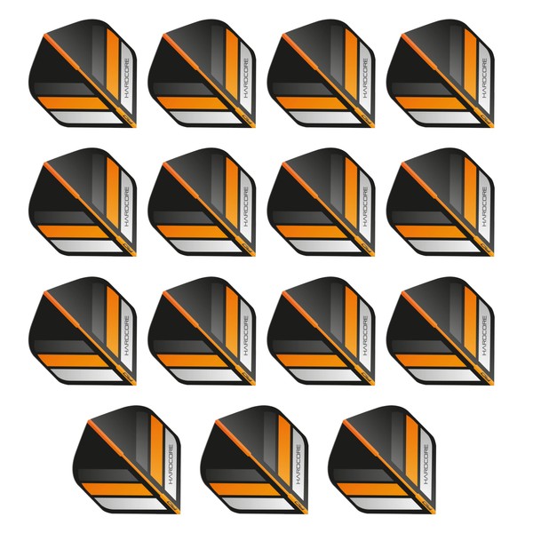 RED DRAGON Hardcore XT Black and Orange Stripe Extra Thick Standard Dart Flights - 5 sets Per Pack (15 Dart Flights in total)