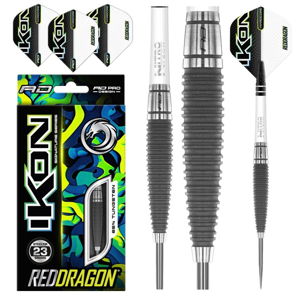 RED DRAGON Ikon 1.1 23 Gram Professional Tungsten Steeltip Darts Set with Flights and Stems