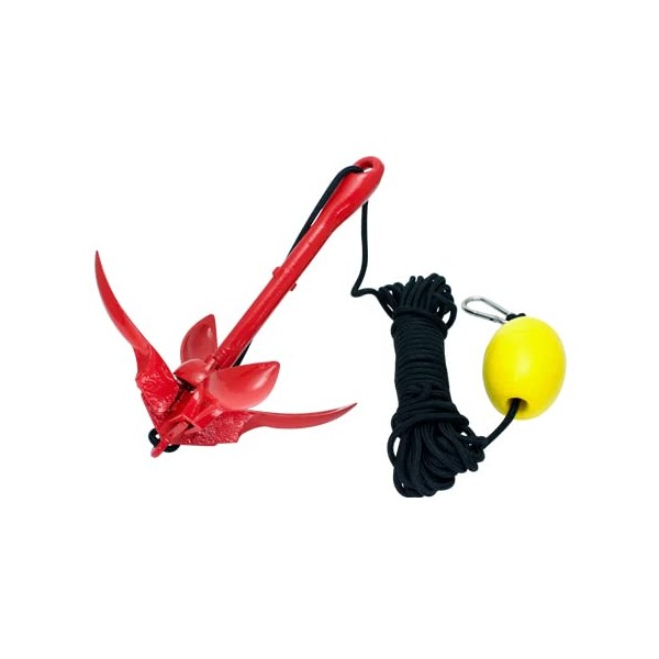 Red Folding Grapnel Anchor Kit 3.5 lbs for PWC/Kayaks/Jet Skis/Dinghys/Canoe