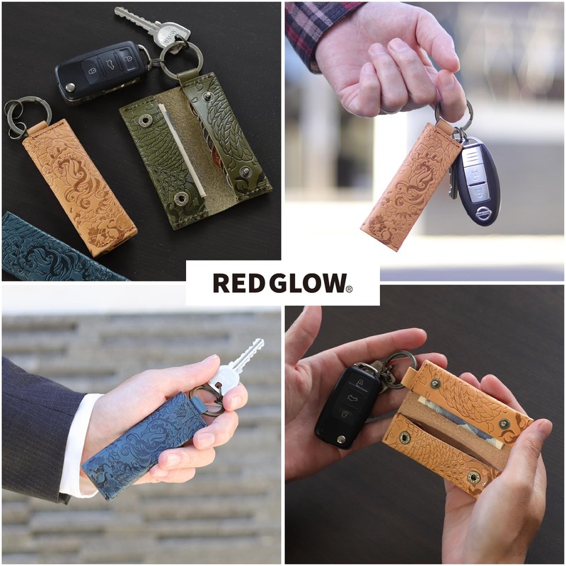Red Glow RG-006-B Phoenix Multi-Purpose Leather Keychain, Keycase with Key Ring and Mini Coin Wallet (Camel)