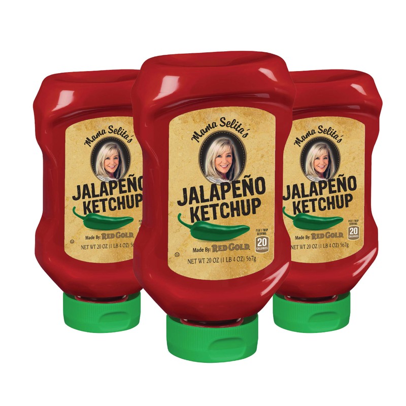 Mama Selita's Red Gold Jalapeno Tomato Ketchup, Gluten Free, No Drip Easy Squeeze 20 Ounce Bottles, 3-Pack