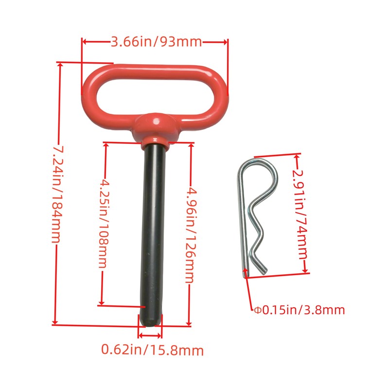 Red Handle Tow Hitch Lock Pin with R-Clamp and Safety for Towing Trailer Pin for Cargo, Boats, RVs (Dia:5/8in(15.8mm) L:4-1/4in(108mm))