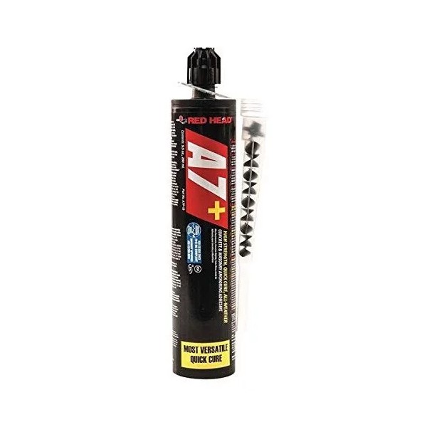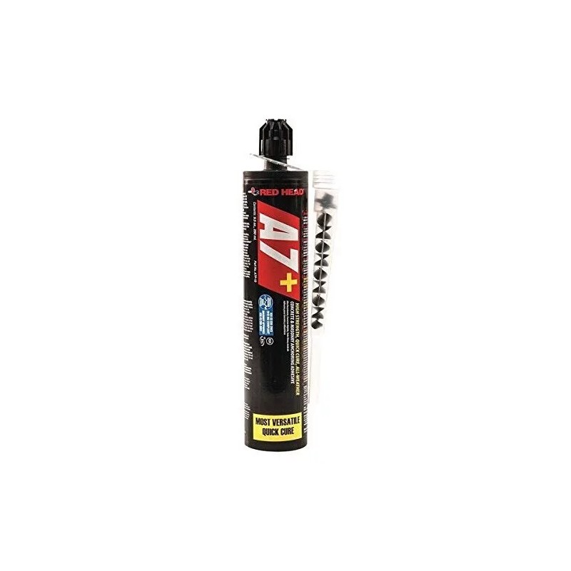 Red Head A7+ is a high-strength, fast-cure adhesive that is designed to securely anchor threaded rod and rebar to cured concrete and masonry. A7+ is one of the most versatile anchoring solutions on the market, suitable for use in an extremely wide range of applications and environmental conditions.