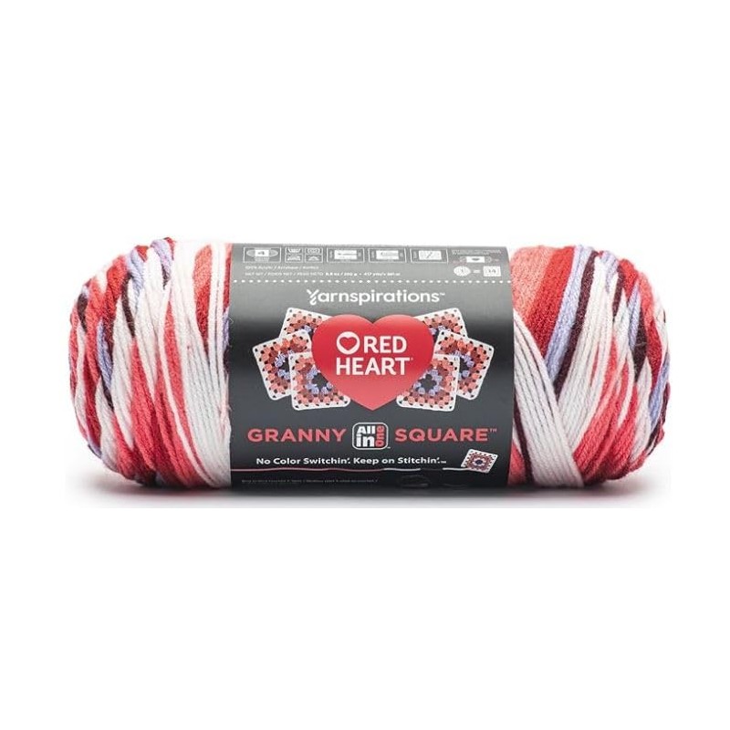 - Red Heart All in One Granny Square, the innovative striping effect designed to crochet 5 color granny squares in just 1 ball. No color switchin’. Just keep on stitchin’ with 67% less ends to weave in to finish your next granny square project. This beginner-friendly yarn is perfect for at-home or on-the-go projects with 1 ball making up to 14 granny squares. This yarn comes in 11 colors, so you can find the perfect granny square project for any occasion.