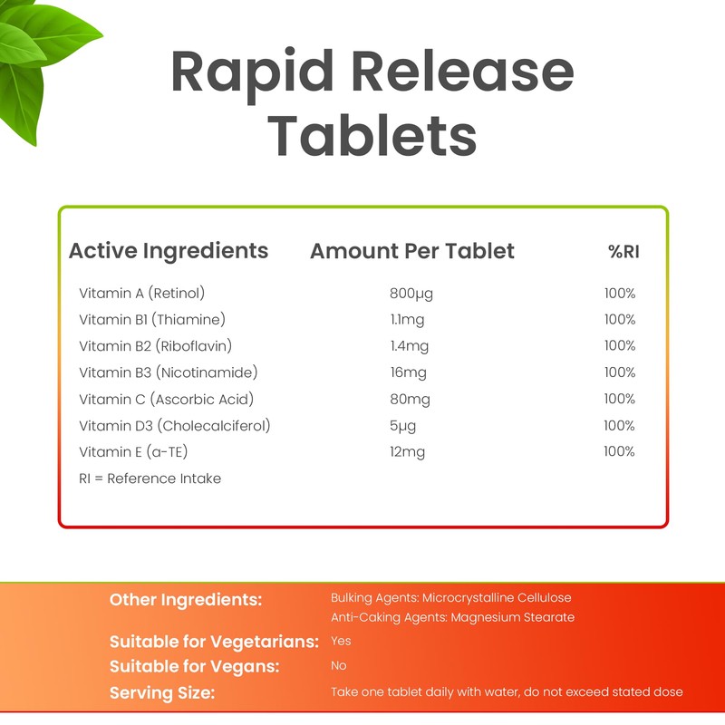 - EASY TO TAKE - Made in the UK, we provide essential vitamins in a small, easy-to-swallow tablet that is ideal for those who have difficulty swallowing large pills. Simply take one tablet a day with a meal for optimal absorption and maximum benefits.