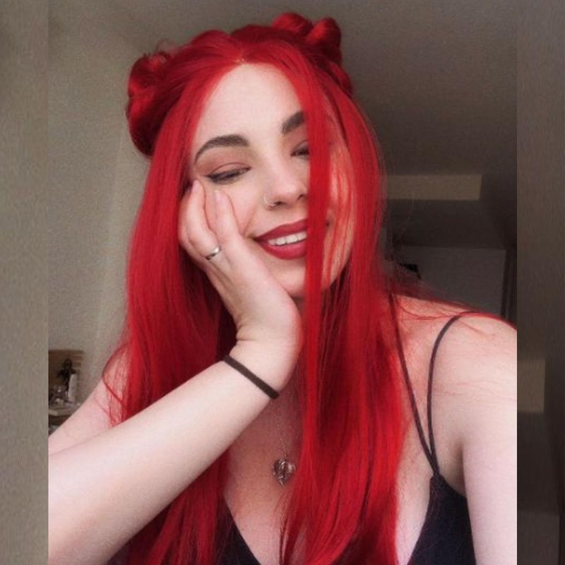 - Red Wig Advantage: Bright Red lace front synthetic wig pre plucked natural density widen hairline more realistic,Hand tied long red synthetic lace front wig. realistic wigs for white women,straight glueless wig,This glueless red hd pre plucked synthetic wig can be styled however you want. Loose wavy texture, half ponytails, double or half bun, bob haircut, changeable shapes can be easily done. Suitable for any occasion