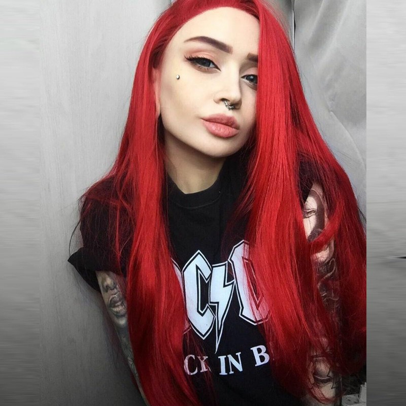 - Light Red Lace Front Wig: 22inch long straight glueless lace front wigs. lace wig synthetic drag Very stylish design, Red lace front wig synthetic will give you the perfect look for daily life, wedding, dating, Halloween, theme parties, cosplay and any other occasion, and brings you more confidence and charm