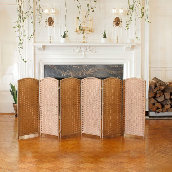 Red Lantern 3 ft. Short Diamond Weave Fiber Folding Screen - Natural - 6 Panel