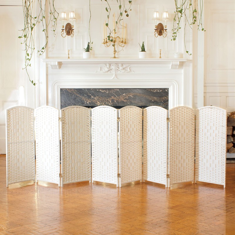 Red Lantern 3 ft. Short Diamond Weave Fiber Folding Screen - White - 8 Panel