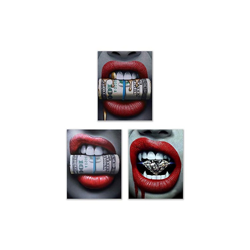Red Lips Photos- Set of 3 (11 inches x 14 inches) Poster Prints - Diamond Money Gold