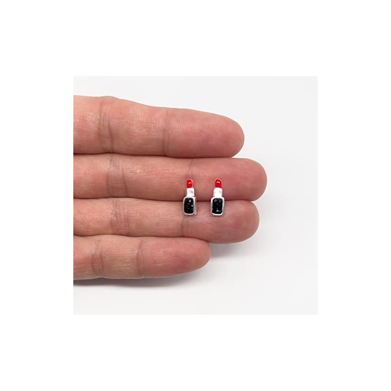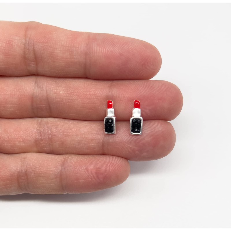 Red Lipstick Earrings with Crystal Stones - 925 Sterling Silver