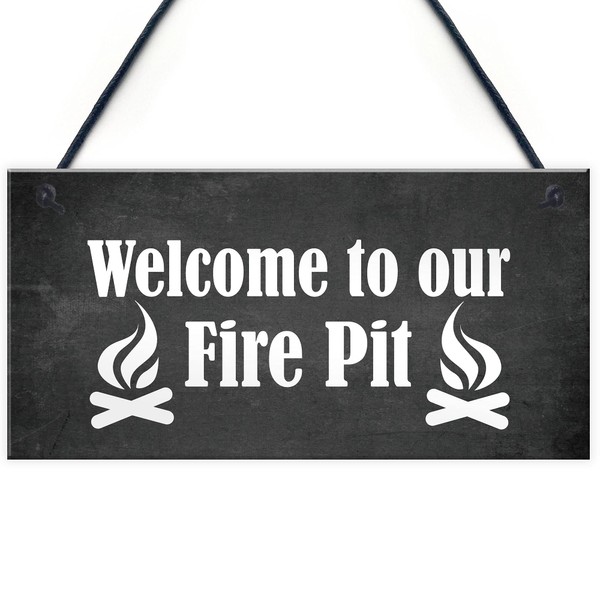 RED OCEAN Fire Pit Garden Hanging Sign Novelty BBQ Garden Shed Plaques Home Decor Signs