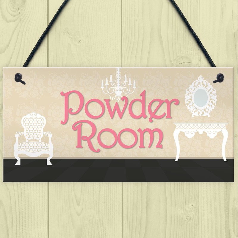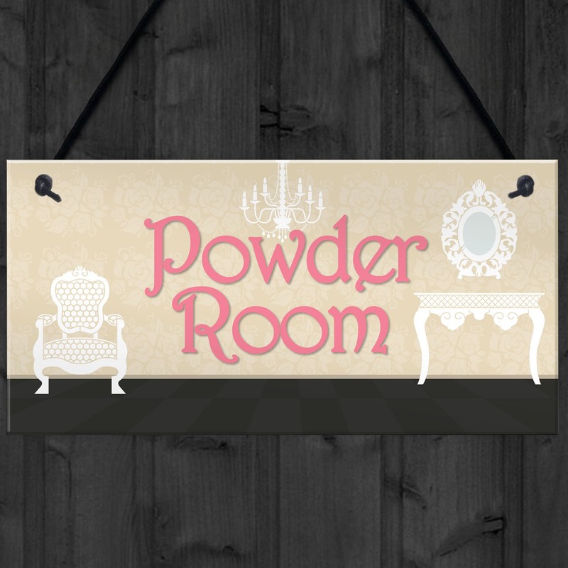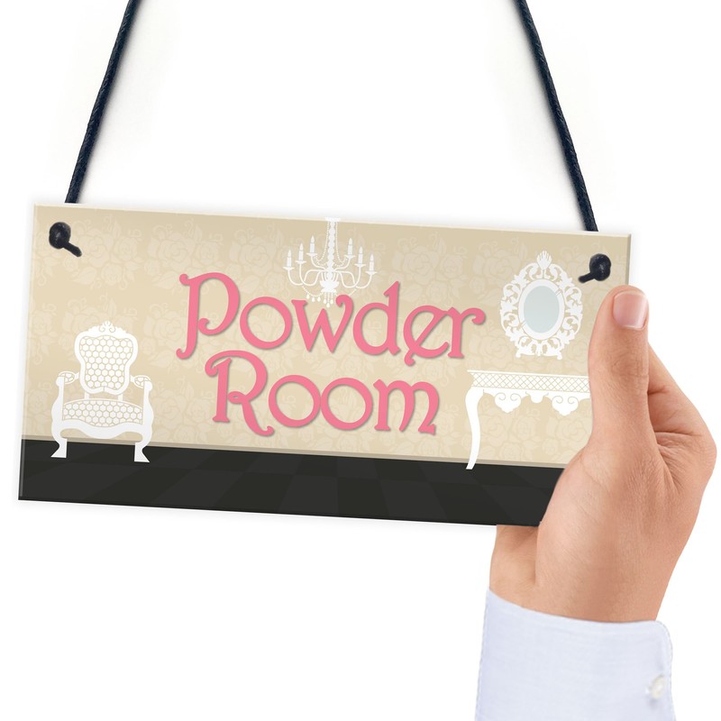 RED OCEAN Powder Room Vintage Shabby French Chic Bathroom Hanging Plaque Friend Gift Sign