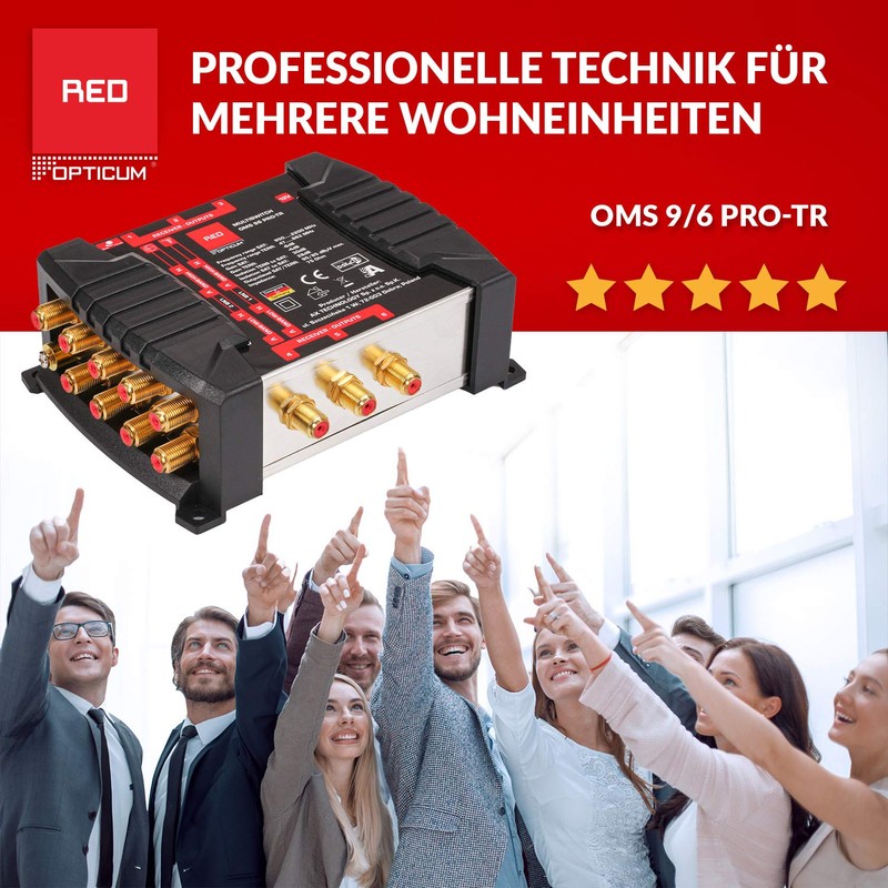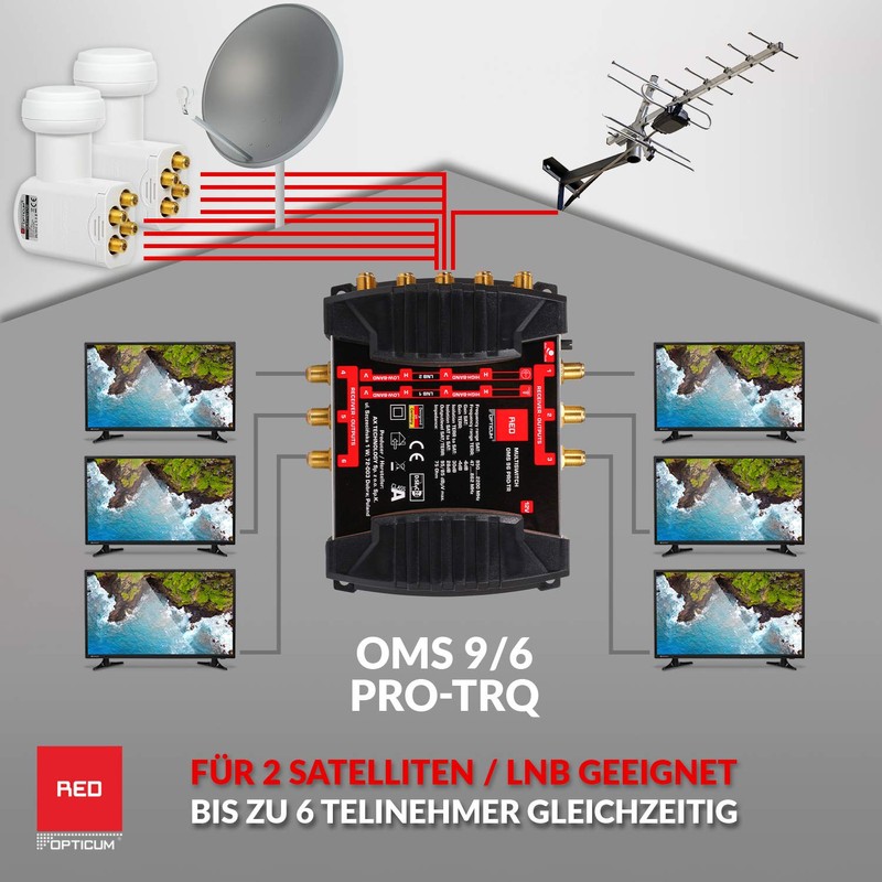 RED OPTICUM OMS 9-6 PRO TR - 6 Subscribers - Satellite Splitter 2 Satellites to up to 6 Subscribers with Gold-Plated Contacts - 3D UHD 4K Ready - Multiswitch Quattro LNB Suitable