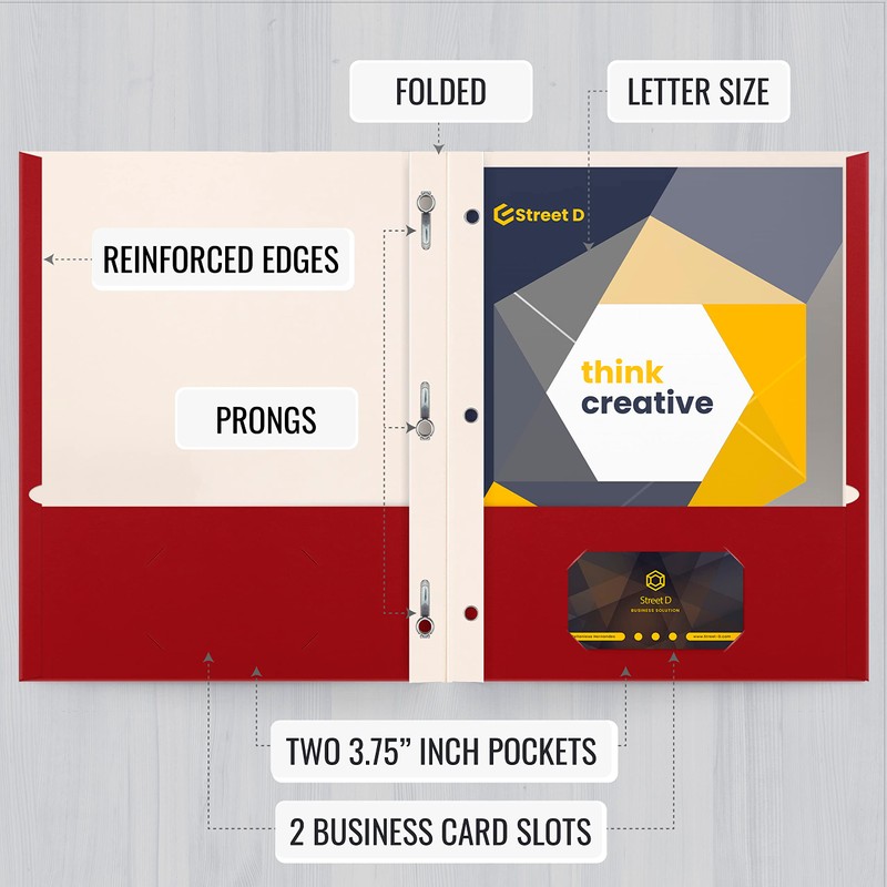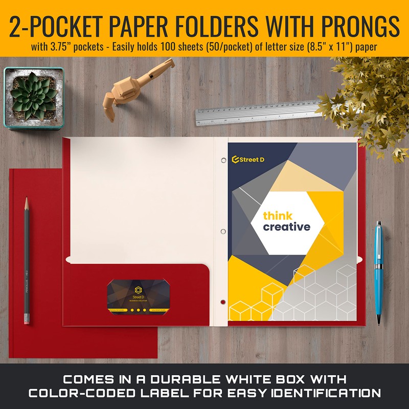 - 50-PACK: Red matte finish paper folders with 3.75" pockets and prongs. Easily holds 100 sheets (50/pocket) of letter size (8.5" x 11") paper/documents. But can even handle more.