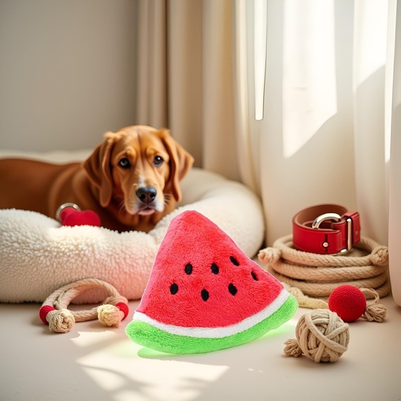 - INTERACTIVE FEATURES: Equipped with a squeaker that produces watermelon-like sounds to keep pets engaged and entertained
