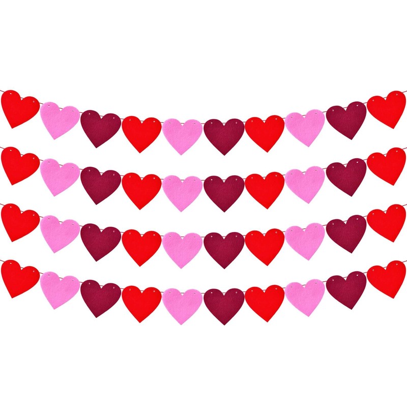 - WHAT YOU WILL RECEIVE: You will receive red pink deep red felt heart Valentine's Day banner. The heart is 4 inches (10 cm), and make 4 pieces of hearts streamers, a roll of ribbon (33 feet), one needle. This red pink deep red felt heart Valentine's Day Banner is designed to fulfill your decorative needs for a Valentine's Day Banner-themed party.