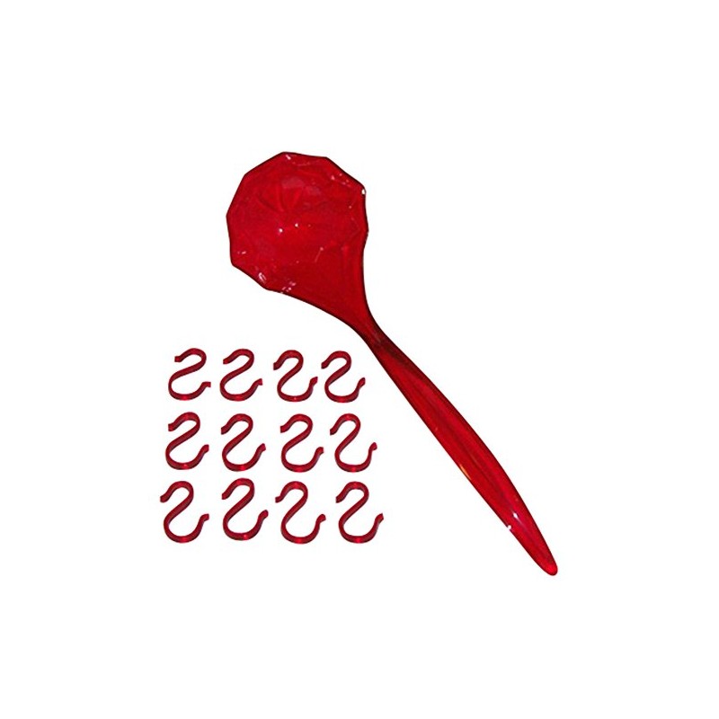 BRAND NEW - NEVER USED !!! One RED Plastic Punch Bowl Ladle. Length is approx.: 13", ladle bowl is 4" wide & 2 1/2" deep. Dipper holds approx. 6 ounces of liquid. Has pointed sides for easy pouring. Excellent for Right or Left handed serving. *~*~*~*~*~*~ AND ~*~*~*~*~*~* 12 RED Plastic Punch cup hooks. Unlike metal hooks, these palstic hooks will not scratch or damage your cups or bowl. They are “S” shaped and measure approx.: 1 5/8” in length. THEY WILL FIT MOST PUNCH BOWLS!!! PERFECT FOR PARTIES, WEDDINGS, SPECIAL OCCASIONS, ETC...