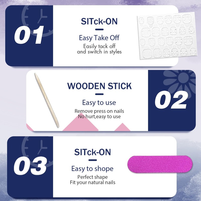 2.Please note that the nail glue is not included.If you want it last for a longer time,please use nail glue instead of the nail stickers.