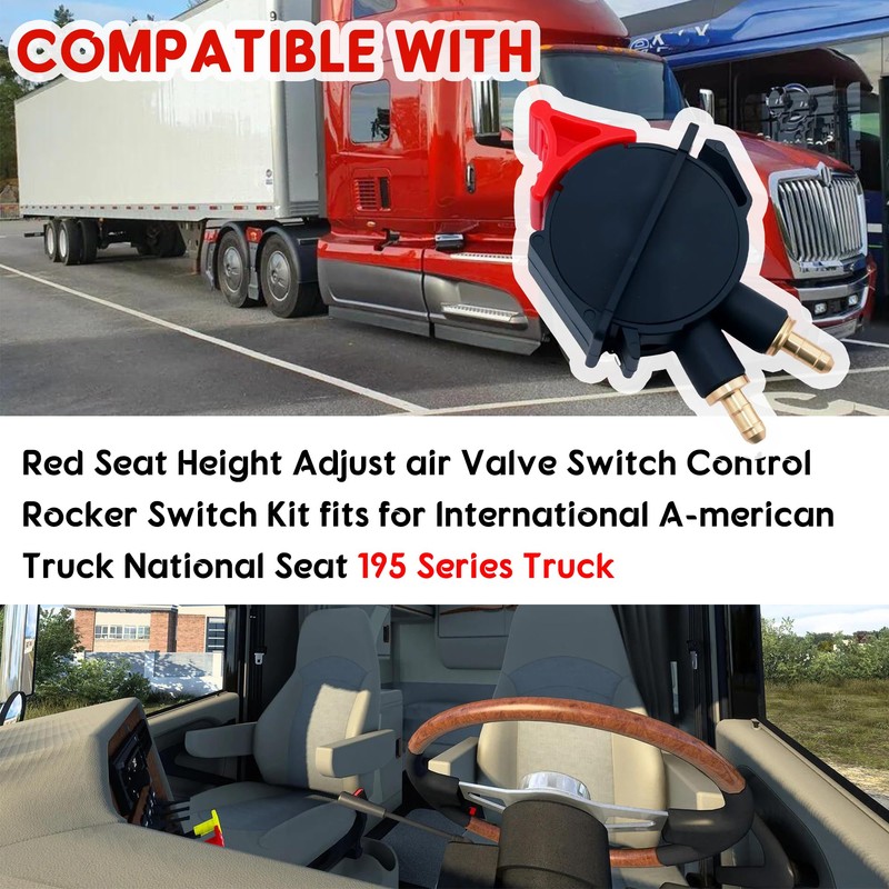 Compatible with:Red Seat Height Adjust air Valve Switch Control Rocker Switch Kit fits for Truck 195 Series Truck