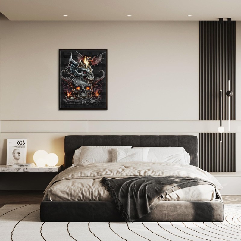 Red Skull Full Round Diamond Art Kit for Adults, 5D DIY Dragon Diamond Painting Kit - DIY Kit for Home Bedroom Wall Decoration 12x14 Inch
