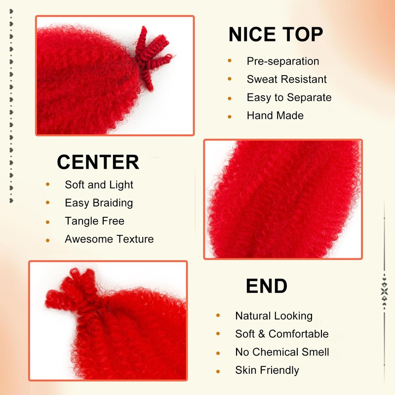 Occasions: Pre fluffed kinky twist suitable for daily use, weddings, parties, performances, travel, role-playing, and any time you want to showcase your charm.