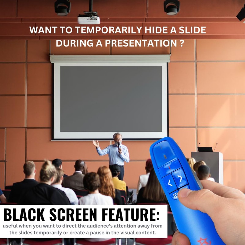 Best of all, no wires or pairing is required with this Red Star Tec wireless presenter remote and therefore no last minute hiccups. Rather you will have total control of your powerpoint presentation.