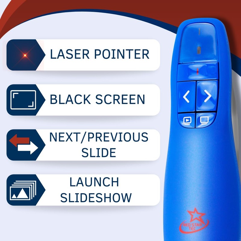 Red Star Tec Wireless Powerpoint and Keynote Presentation Remote Clicker PR-819 (Blue, 1 Pack)