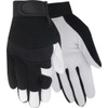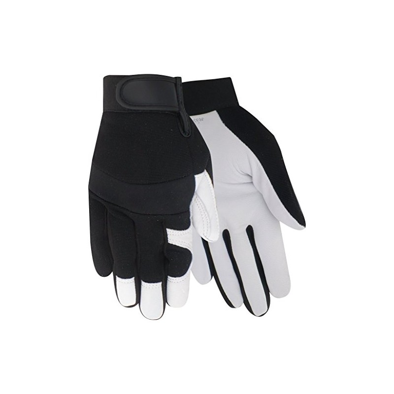 - Durable grain goatskin leather palm, forefinger, and finger tips with stretch spandex back
