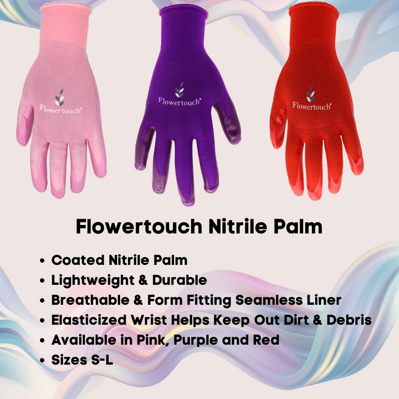 Red Steer A369 Flowertouch Lawn & Garden Gloves, Nitrile Palm, Pink, Purple or Red, Sizes S-L, Sold by Pair (Medium (3 Pair Pack), Pink)