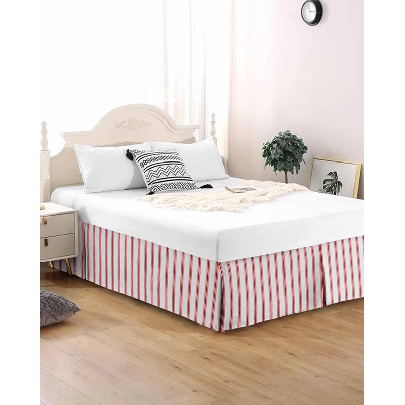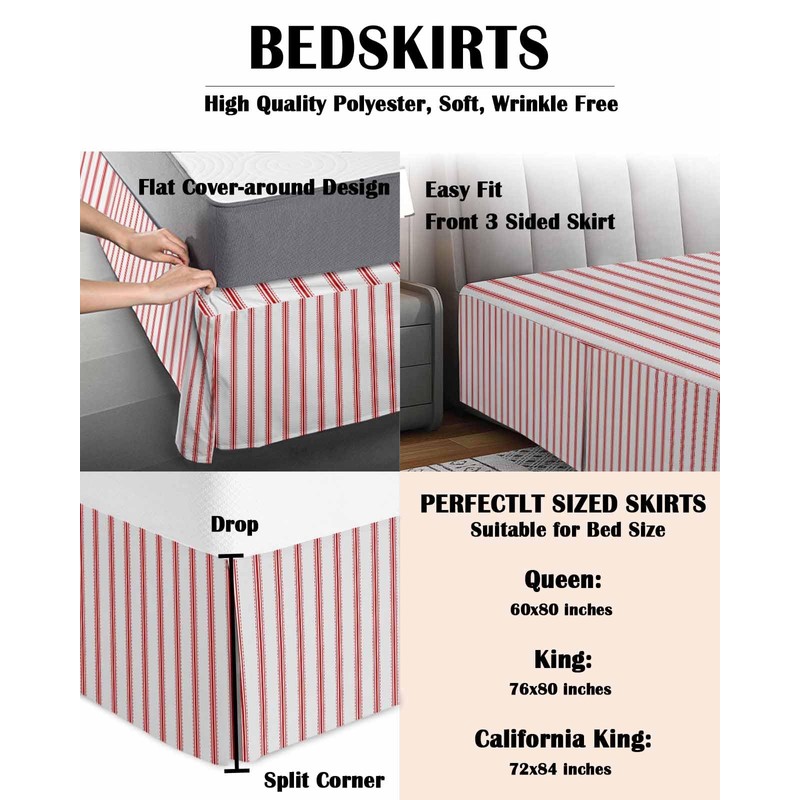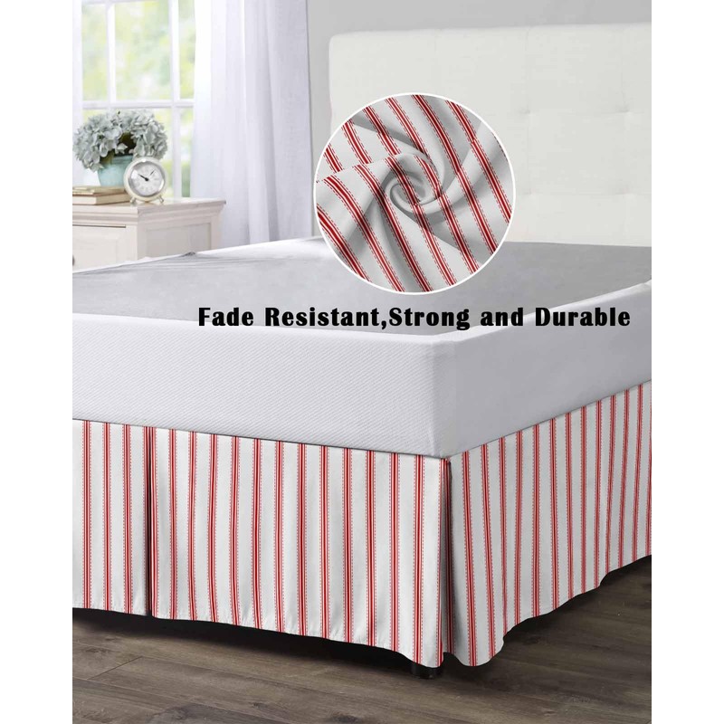 Red Striped Bed Skirt Queen Size 18 Inch Drop, Luxury Pleated Bed Frame Cover, Red White Stripes Farmhouse Sheet & Wrap Around Bed Skirts Box Spring Cover Dust Ruffle for Queen Bed with Split Corner