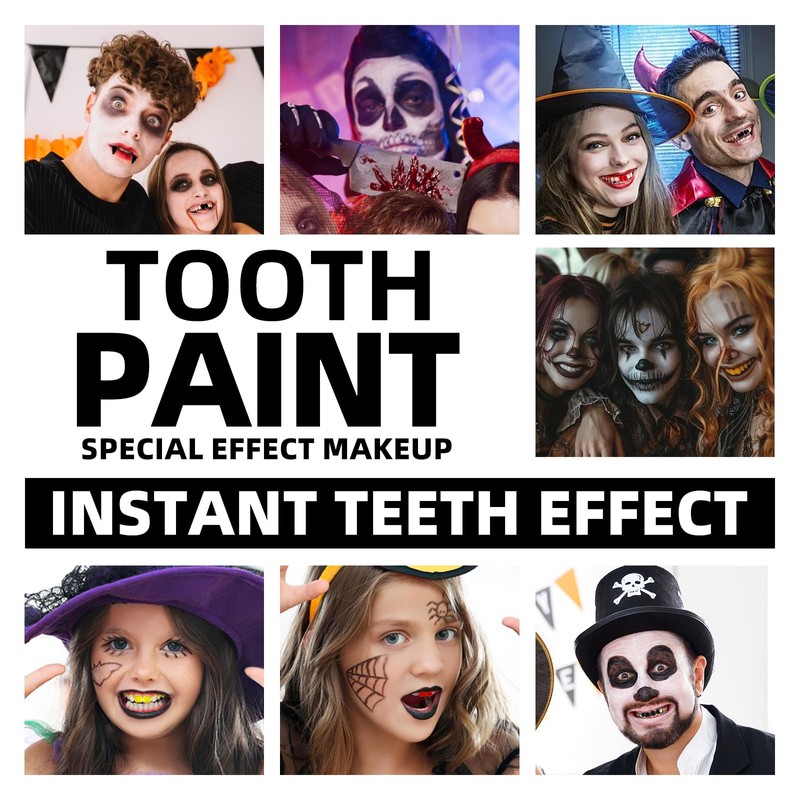 - Professional & Long Lasting Effect: Tooth paint is perfect for a realistic mouth effect, The tooth paint makeup is a professional formula that stays on until you want to remove it, so you can enjoy your special effects makeup without worry of fading or smudging.