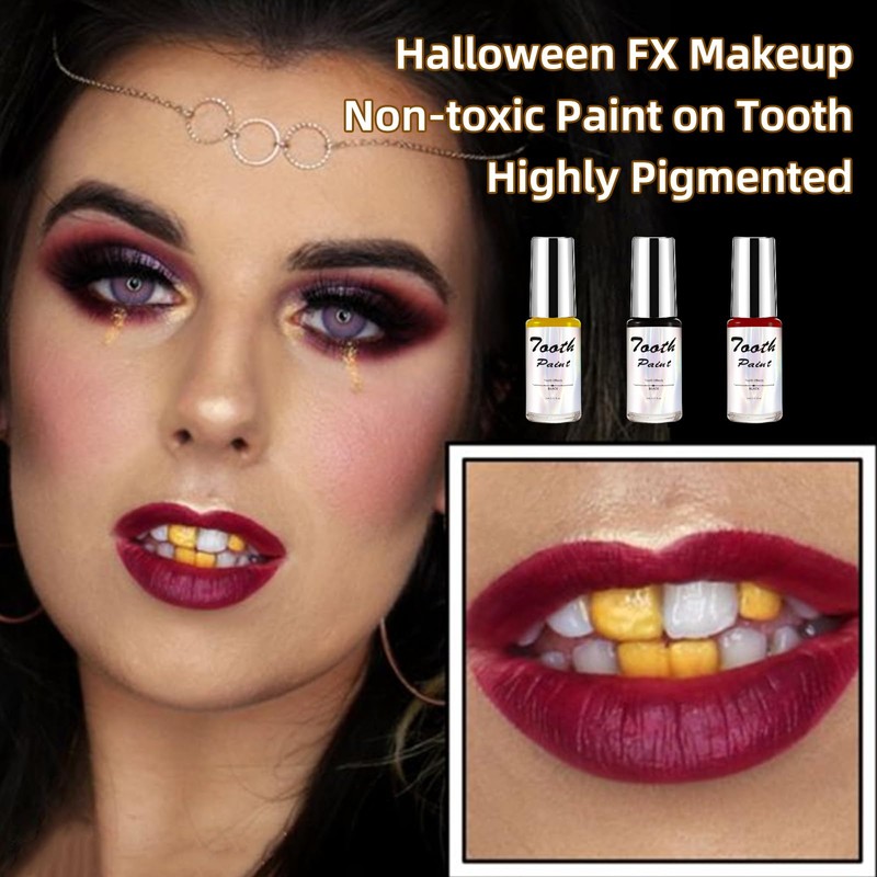 - Professional FX Makeup Tooth Paint: Provides excellent coverage and smooth appearance on teeth for stunning special effects makeup. 3 colors can choose: Black, Red, Gold. To help you create many different effects.