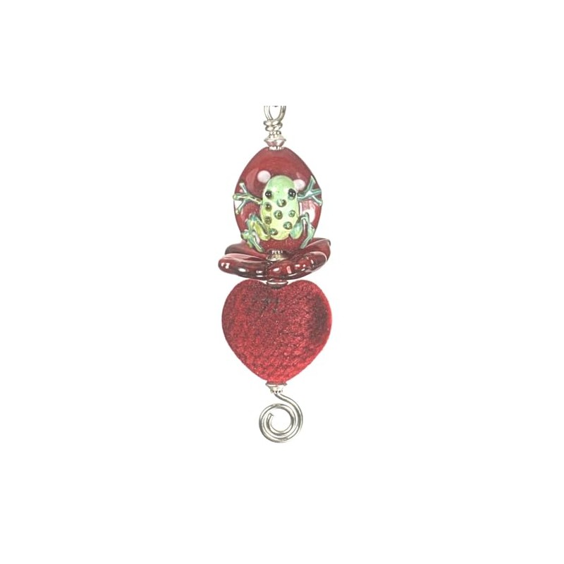 Red Velvet Heart with Handcrafted Artisan Green Lampwork Glass Frog Ceiling Fan Pull Chain